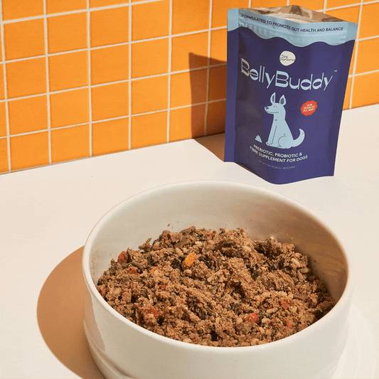 Switching diets can be stressful on your dog's tummy. That's before BellyBuddy, a 3-in-1 supplement that we developed to make upgrading your dog's diet a seamless transition.